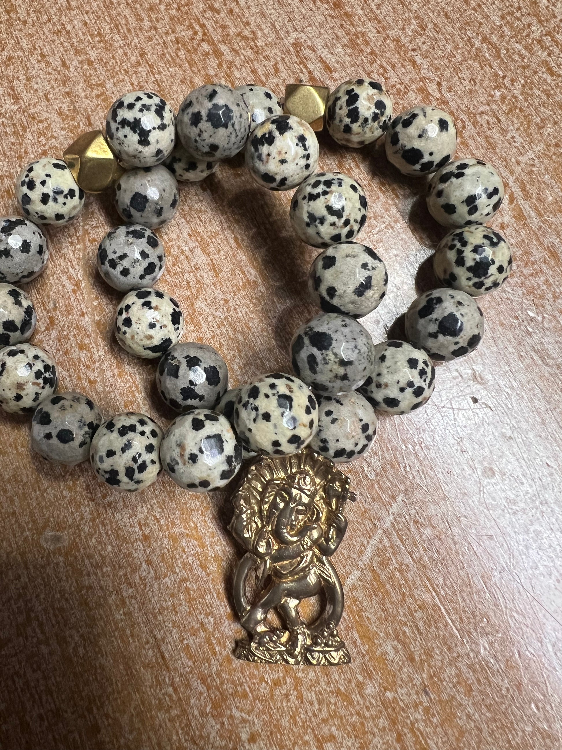 14mm Jasper Gemstone Bracelets with Tibetan Brass GaneshaTalisman -Remover of Obstacles