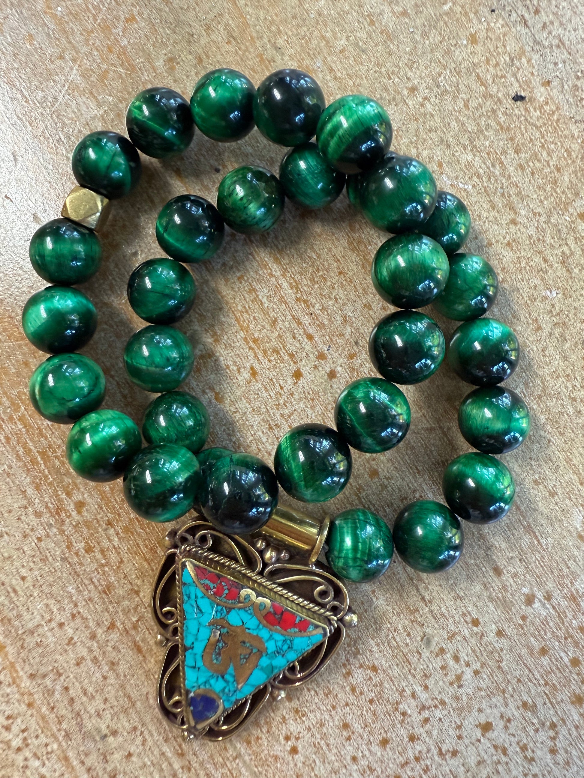 14 mm Gemstone Bracelet Set with Enamel OM Talisman
