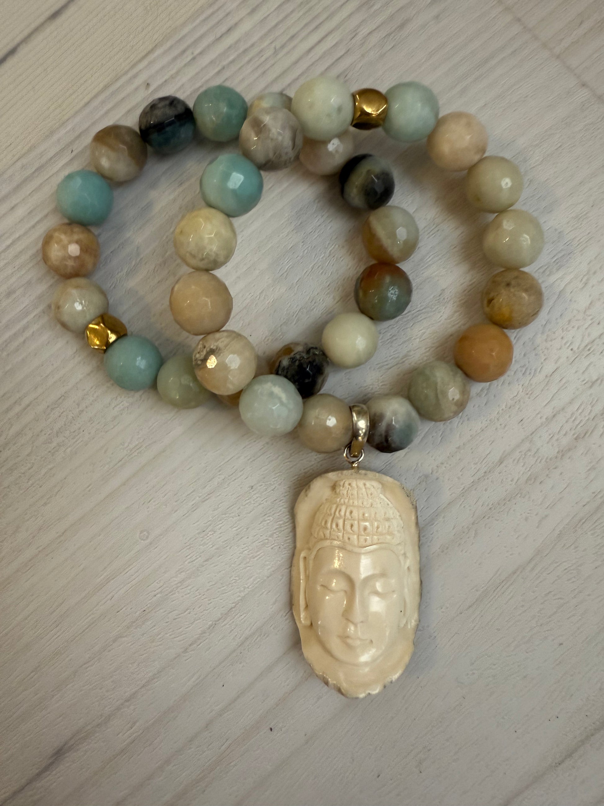 12mm Amazonite Gemstone Bracelets with Buddha Talisman