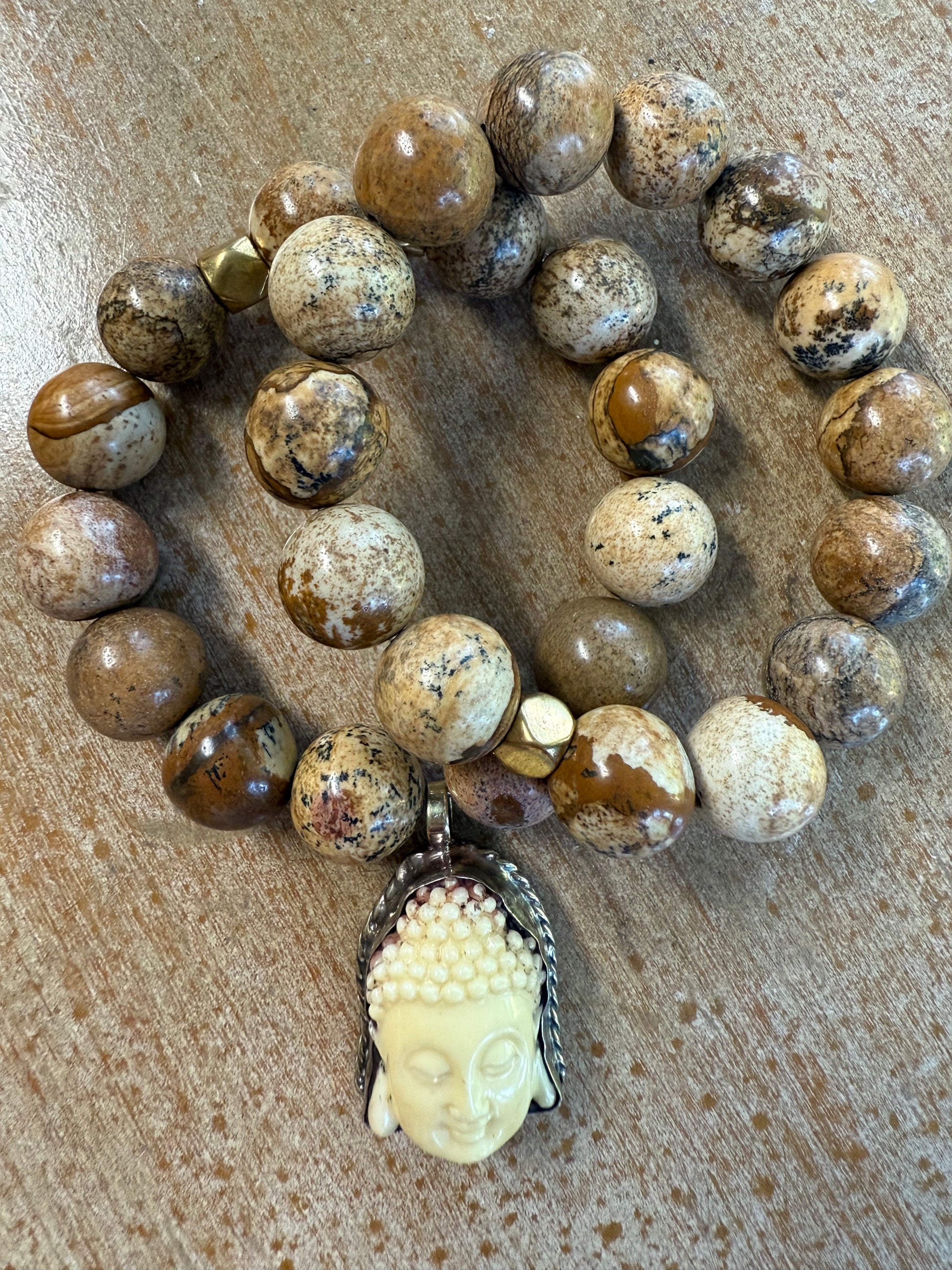 14mm Gemstone Bracelet Set with Buddha Talisman